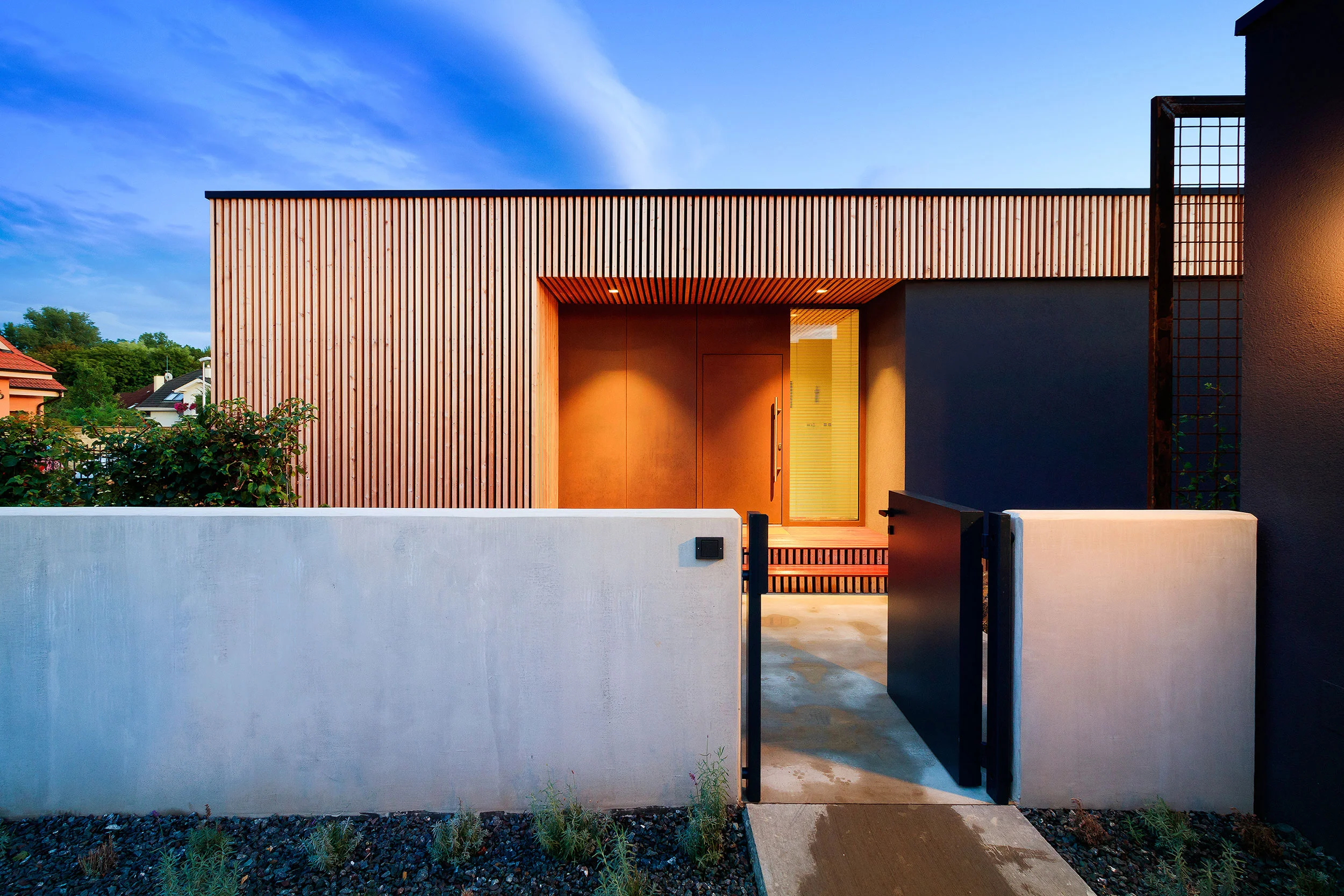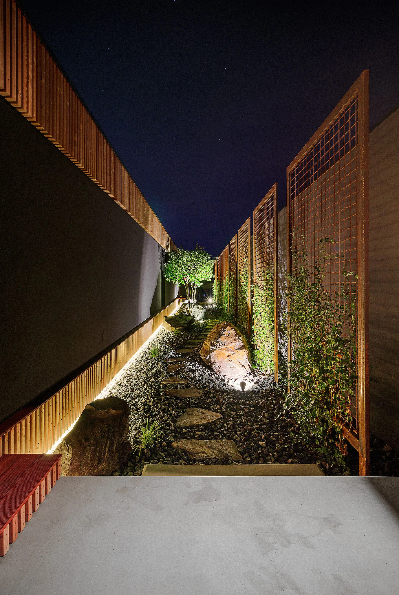 The outline of the house stands in the foreground; the garage is wrapped in the greenery and is pushed to the back. This is how a lovely entry zone has arisen in front of the house where the public and the private spheres intersect. We wanted to break the usual scheme of the street so common in Slovakia: when walking in the street, you just see garages in front and the houses are hidden behind them, what makes the street an unfriendly and anonymous environment.
