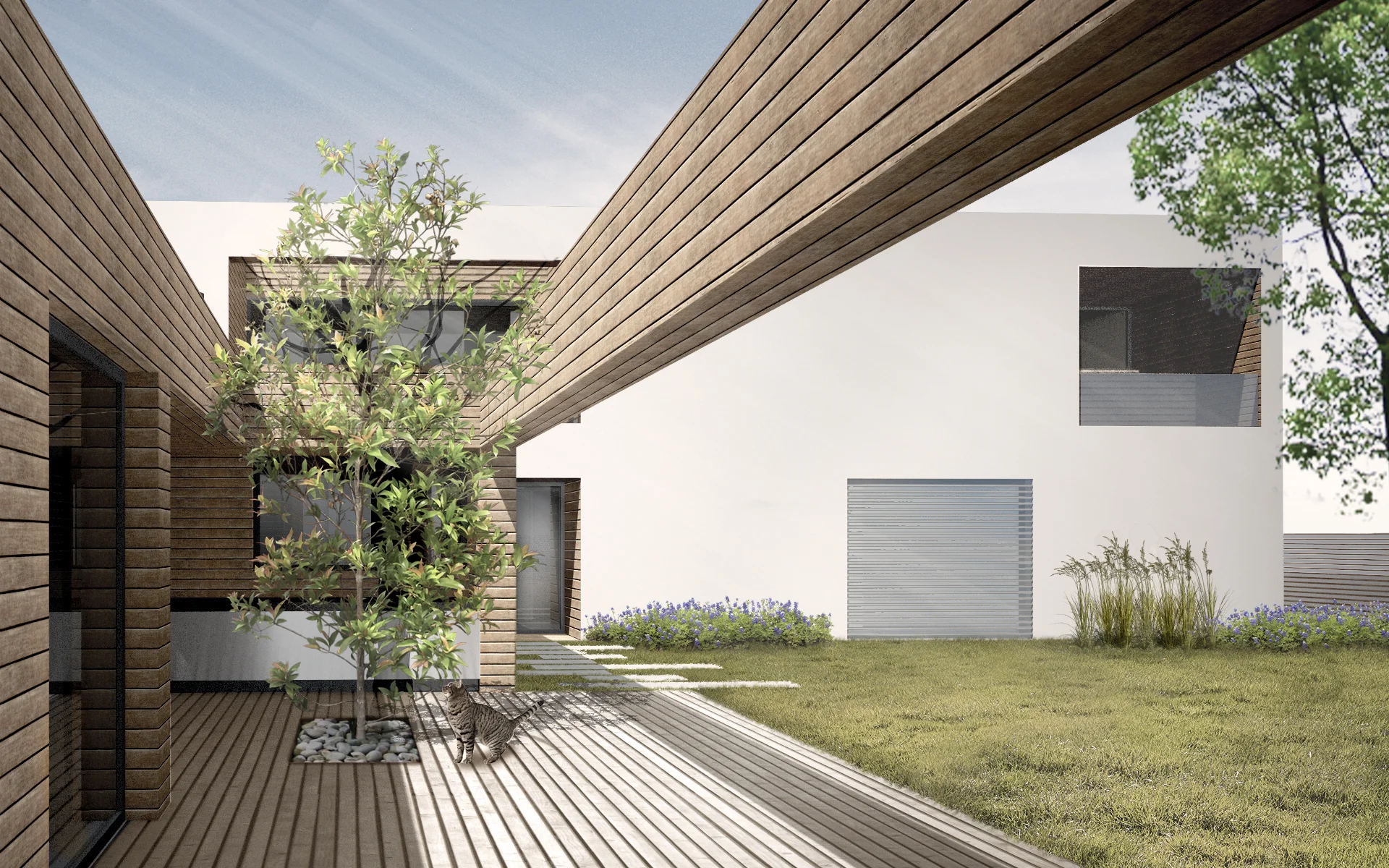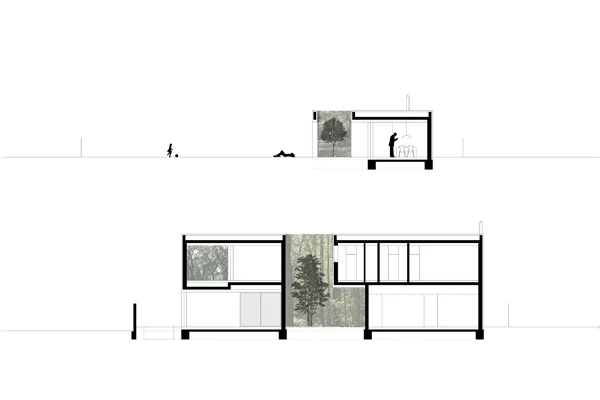 Vila C represents a new way of living between outside and inside. This house is designed for a family with two daughters who love spending their time in the garden. The main idea is a diffusion between exterior and interior and deleting its exact boundaries.